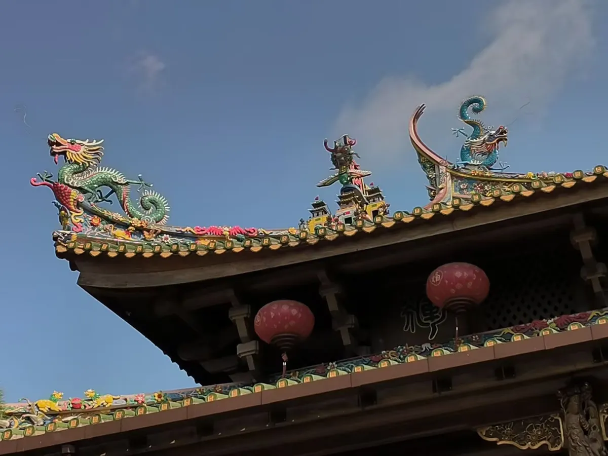 下山的道上则能见到令人捧腹的妙景:一座小观音像上,不知何人供奉了多根香烟,且精准地送进龙口、观音怀中、武将手上。这时我又想起某位大师说过的话了:“中国人信的不是佛祖,而是那份实在的福气。……”